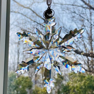 Crystal Snowflake Suncatcher – Iridescent Hanging Ornament for Windows, Holiday Light Catcher Décor